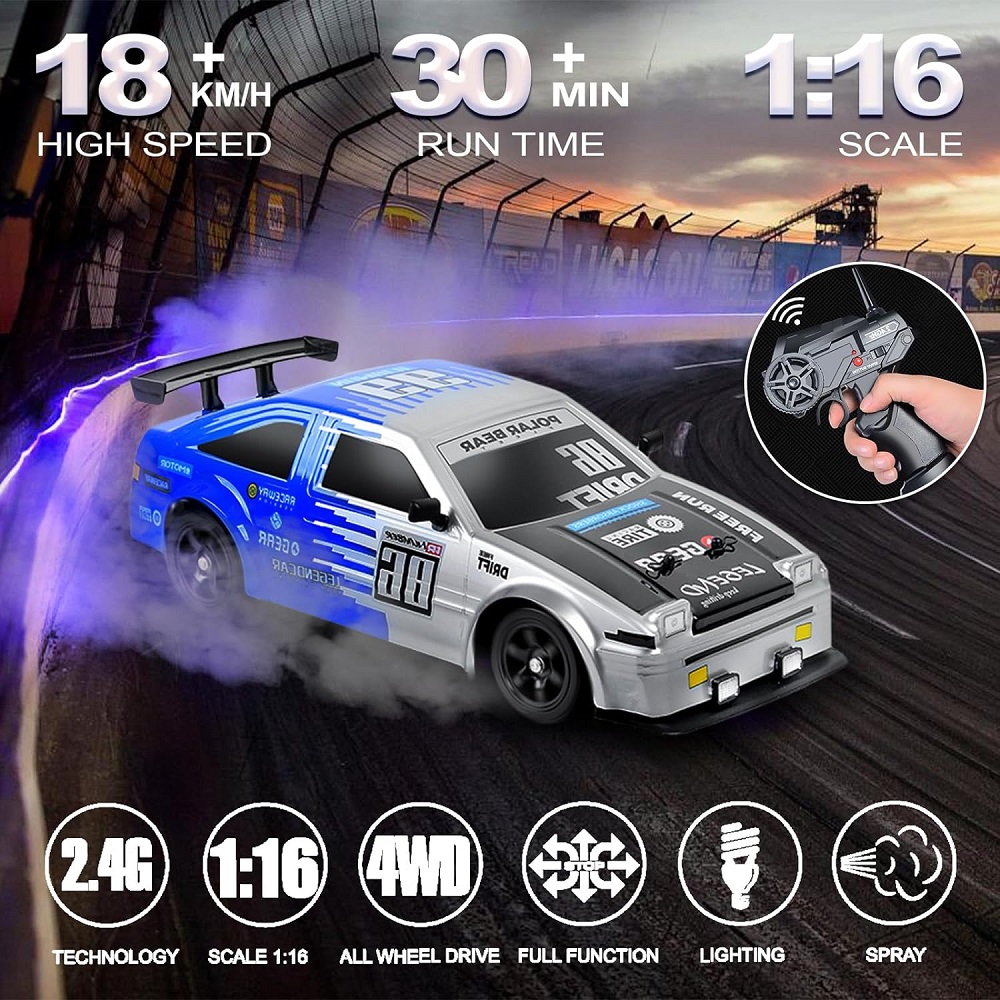 Visoka zmogljivost: Doživite razburljive hitrosti do 18 km/h s tem 1:16 4WD RC avtom za driftanje. Ima sistem nadzora 2.4GHz in nudi daljinski doseg do 100 metrov, kar zagotavlja navdušujoče doživetje vožnje.