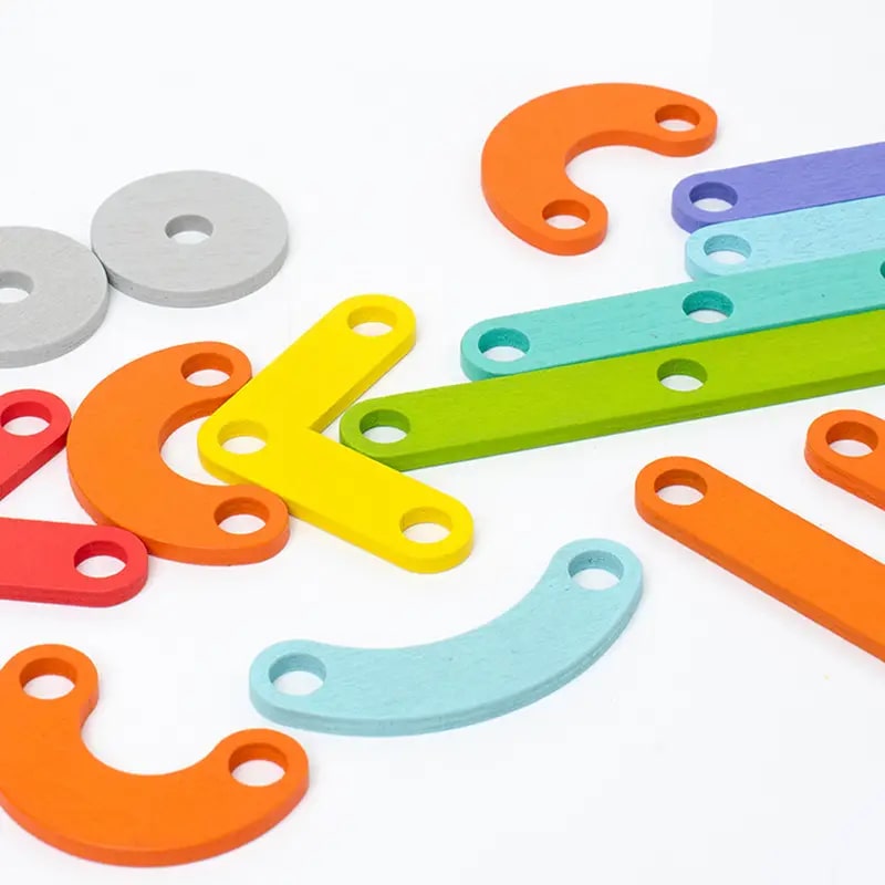 Izdelani iz trpežnega, visokokakovostnega lesa so kosi robustni in odporni proti razpokanju. So barviti, enostavni za sestavljanje in razstavljanje, komplet pa vključuje prozorno vrečko za shranjevanje, kar olajša prenašanje. To jih naredi za idealno darilo.